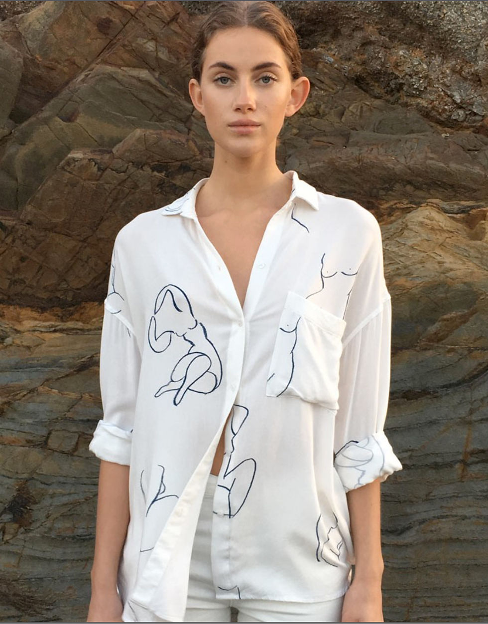 Reformation printed shirt. Made from 100% up-cyled fabric. Their factory uses the most efficient, eco-friendly and pro-social technologies and practices they can get. Investing in green building infrastructure to minimize our waste, water, and energy footprints. By providing on-the-job training and opportunities for growth, they also invest in the people who work with them. $128